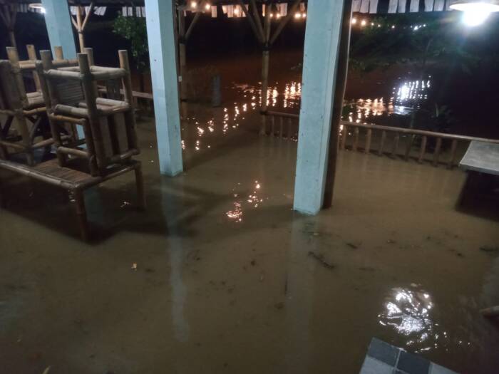 Sungai Cisadane di wilayah Tangerang Selatan (Tangsel), Banten, meluap, Sabtu (25/5/2024) pagi sekitar pukul 01.40 WIB.