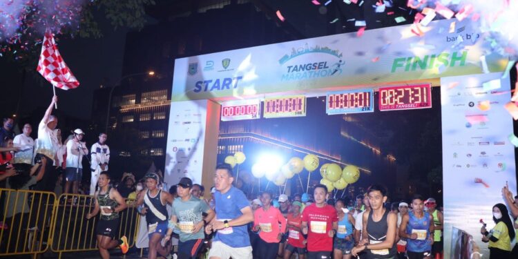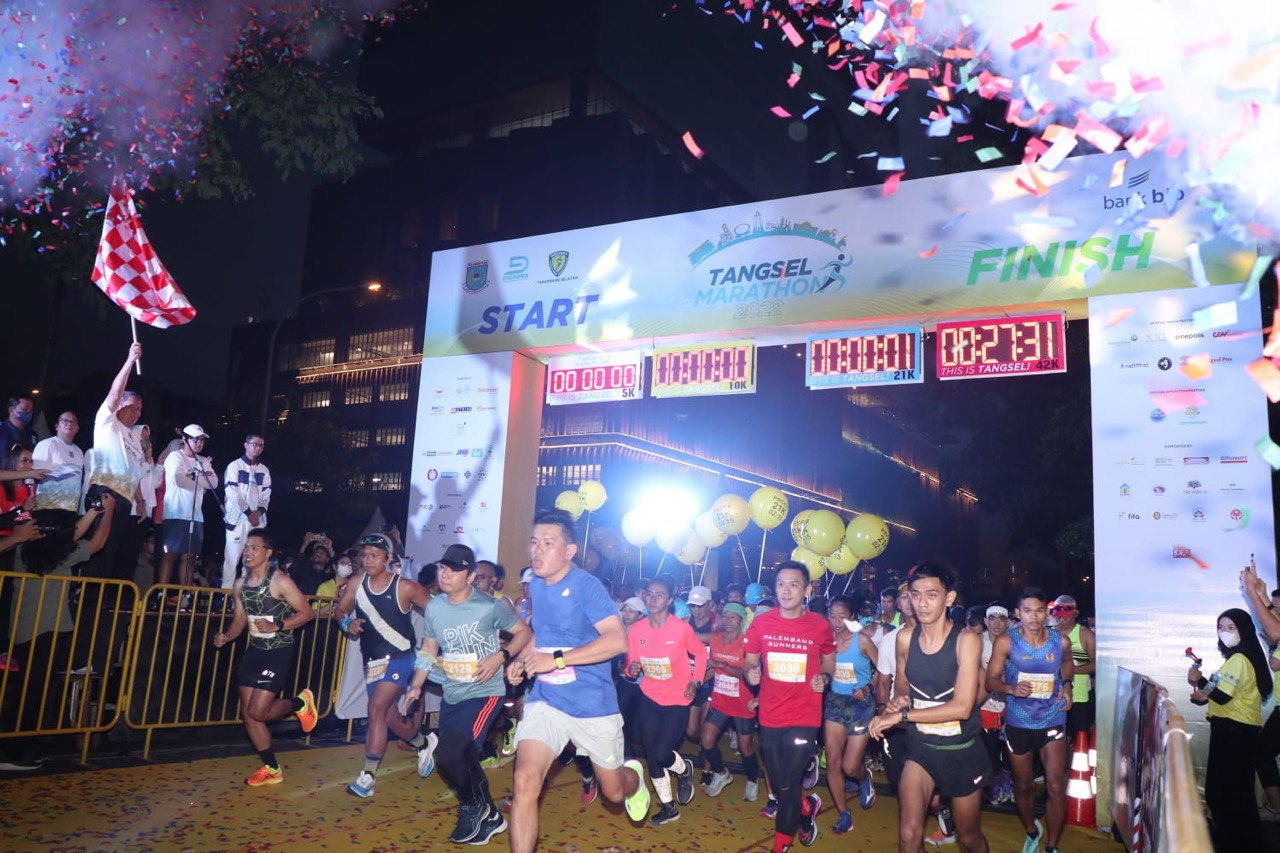 Serpong, HALOBANTEN.COM- Sebanyak 2.500 pelari mengikuti Tangsel Marathon yang diselenggarakan di Teras Kota, BSD, Serpong, Minggu (11/9/2022). Tangsel Marathon dibuka langsung oleh Wali Kota Tangerang Selatan (Tangsel) Benyamin Davnie, Minggu (11/9) Pukul 05.00 Wib. Jalan yang dilintasi peserta lari pun disterilkan dari kendaraan yang melintas.