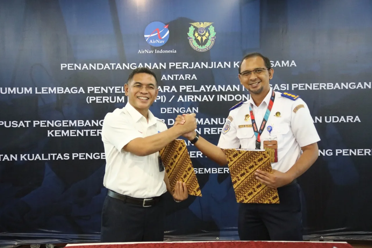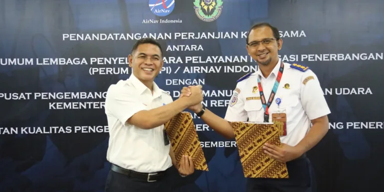 Tangerang, HALOBANTEN.COM- AirNav Indonesia dan Pusat Pengembangan SDM Perhubungan Udara tandatangani kerjasama peningkatan kualitas pengembangan Sumber Daya Manusia di bidang penerbangan.