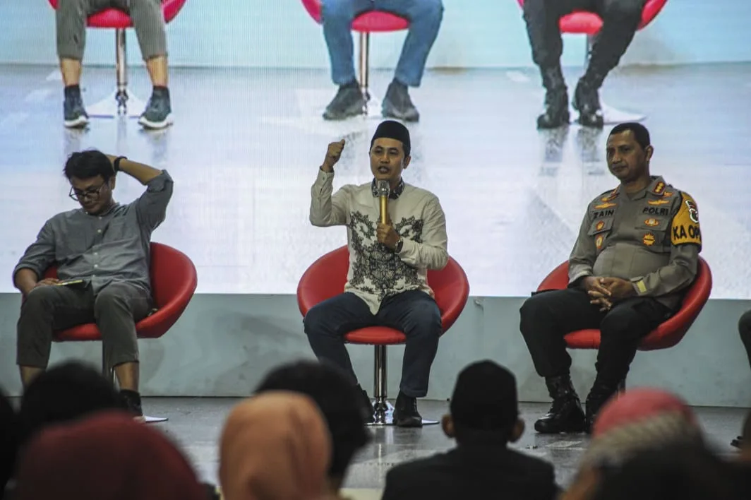 Diskusi Pemilu damai 2024 menghadirkan sejumlah pembicara dari Komisi Pemilihan Umum (KPU) Kota Tangerang, Badan Pengawas Pemilu (Bawaslu) Kota Tangerang, Polres Metro Tangerang Kota, hingga unsur pemkot Tangerang.