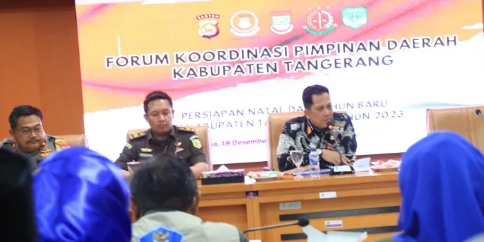 Rakor yang digelar di Ruang Rapat Wareng, Puspemkab Tangerang itu dalam rangka memperkuat sinergi jelang Natal 2023 dan tahun baru 2024 (Nataru), Selasa (19/12/2023).