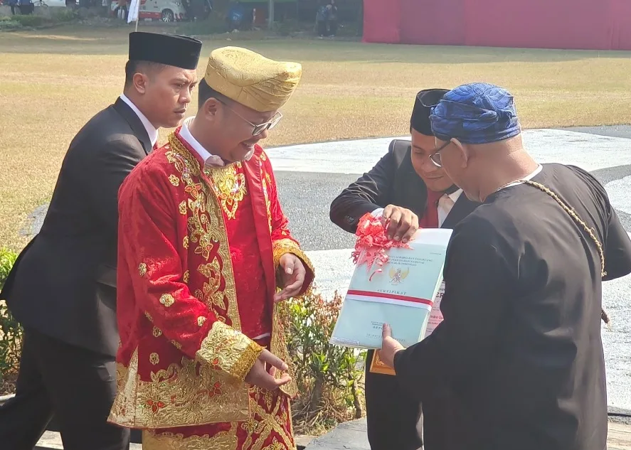Piagam penghargaan diberikan langsung oleh Wali Kota Depok Mohammad Idris dan diterima Kepala BPN Depok Indra Gunawan usai upacara Kemerdekaan RI ke-78 di halaman Pemerintah Kota Depok, Kamis, 17 Agustus 2023.