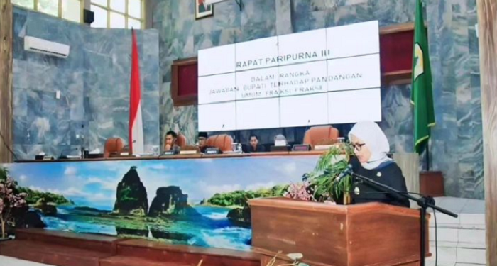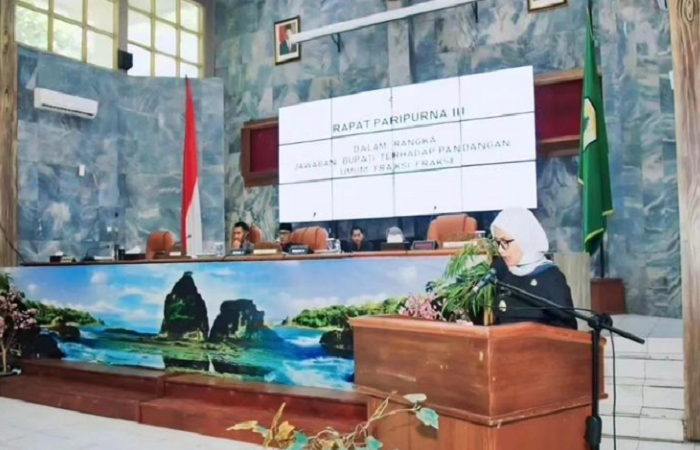 Lebak, HALOBANTEN.COM – Bupati Lebak, Iti Octavia Jayabaya menyampaikan Jawaban Terhadap Pemandangan Umum Fraksi-Fraksi Atas Raperda Tentang Perubahaan Anggaran Pendapatan dan Belanja Daerah (APBD) Tahun Anggaran 2023 pada Rapat Paripurna Dewan Perwakilan Rakyat Daerah (DPRD) Kabupaten Lebak.