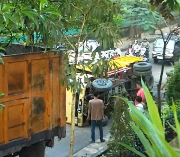 Truk yang terguling juga tidak mengalami kerusakan berat.