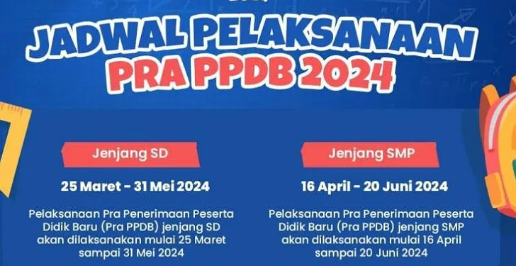 Penerimaan Pra PPDB tersebut berlangsung mulai 25 Maret hingga 31 Mei 2024 mendatang.