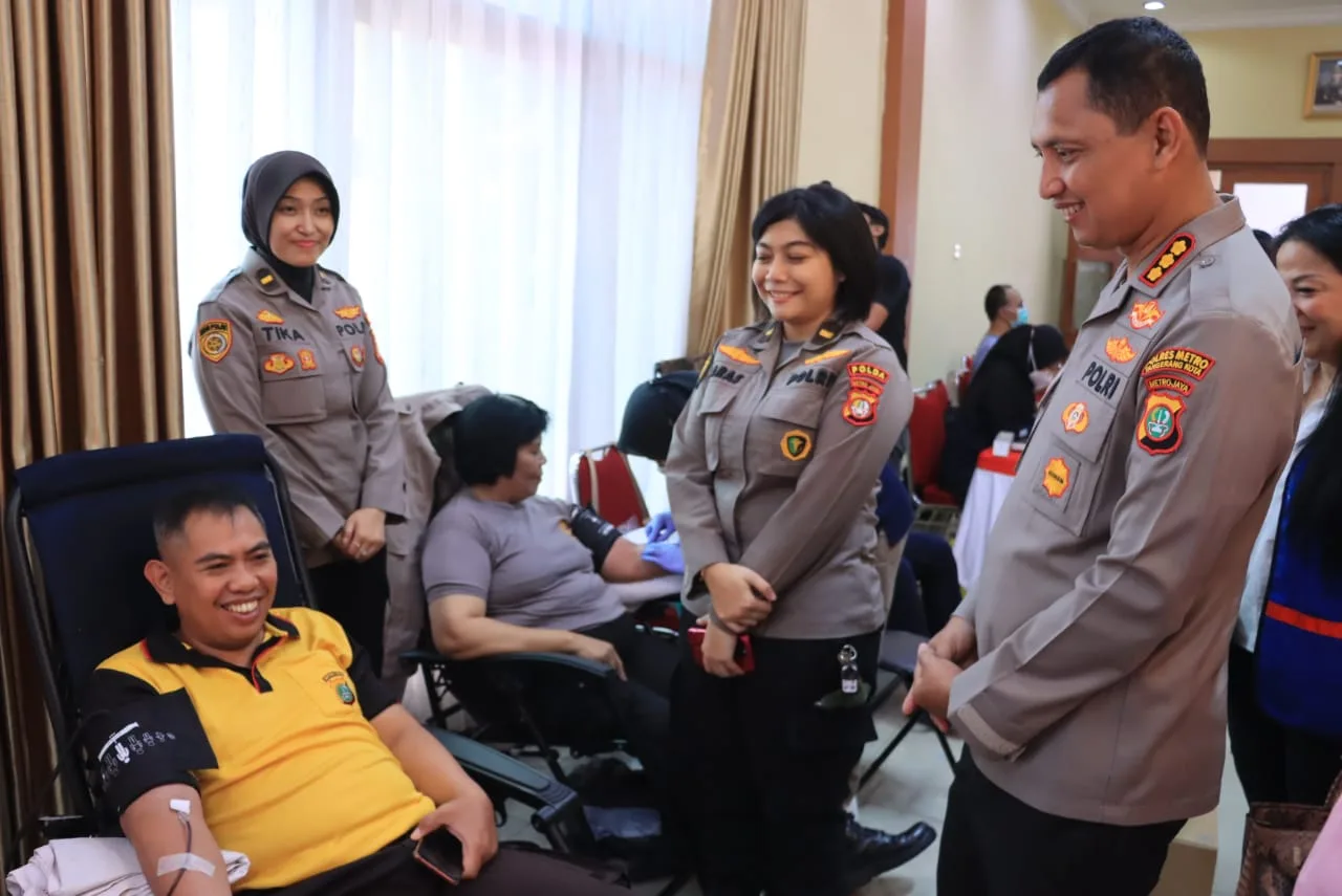 Kapolres Metro Tangerang Kota, Kombes Pol Zain Dwi Nugroho mengatakan penyelenggaraan acara donor darah ini dalam rangka HUT Bhayangkara ke-77 dan menyambut HUT Kemerdekaan RI ke- 78, peduli sesama dengan darah yang disumbangkan.