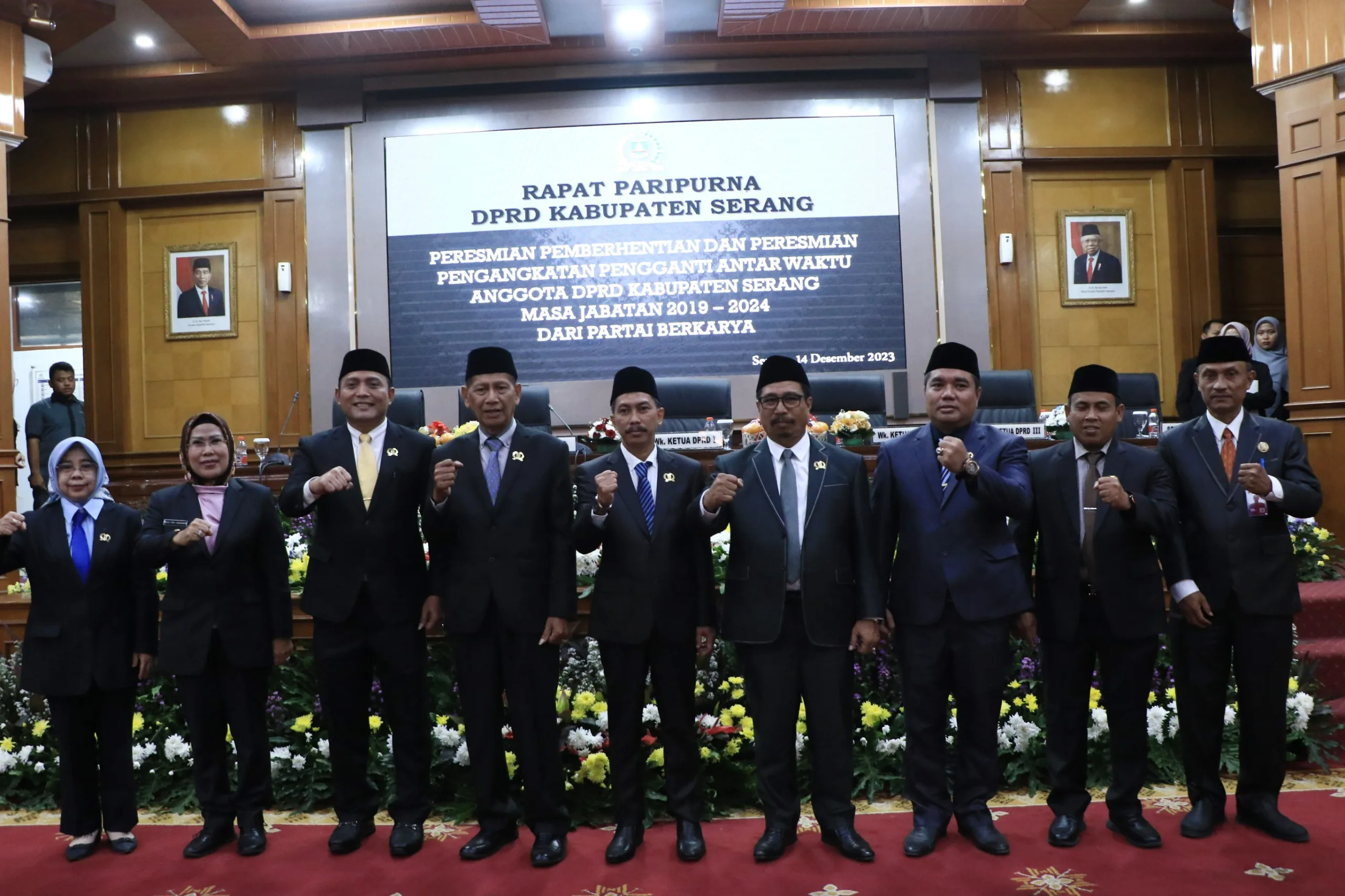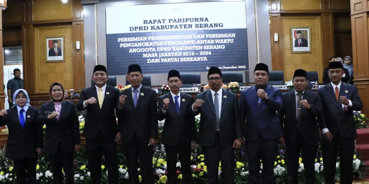 Kabupaten Serang, HALOBANTEN.COM – Dewan Perwakilan Rakyat Daerah (DPRD) Kabupaten Serang menggelar Peresmian pemberhentian dan pengangkatan Pengganti Antar Waktu (PAW) Anggota DPRD Kabupaten Serang masa jabatan 2019-2024 di gedung dewan setempat pada Kamis, 14 Desember 2023. Ketiganya berasal dari Fraksi Partai Berkarya Kabupaten Serang.