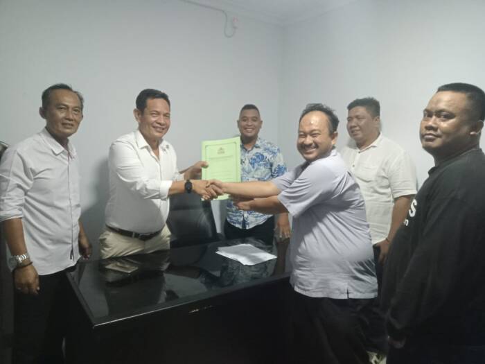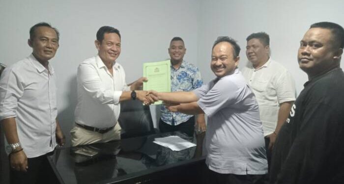 Ibnu didampingi para kerabatnya resmi memgembalikan formulir pendaftaran kepada Steering Comittee (SC) Musyawarah Kota (Mukot) IV, Dada Fatoni di Sekretariat KADIN Kota Serang Jalan Syekh Nawawi Al Bantani Perumahan Prime Point Kecamatan Curug Kota Serang pada Senin (13/3/2023).