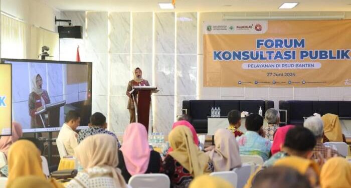 “Pelaksanaan konsultasi publik ini kita lakukan diskusi, pemaparan materi, serta menerima komentar dan masukan terhadap perbaikan pelayanan publik di RSUD Banten,” ucapnya