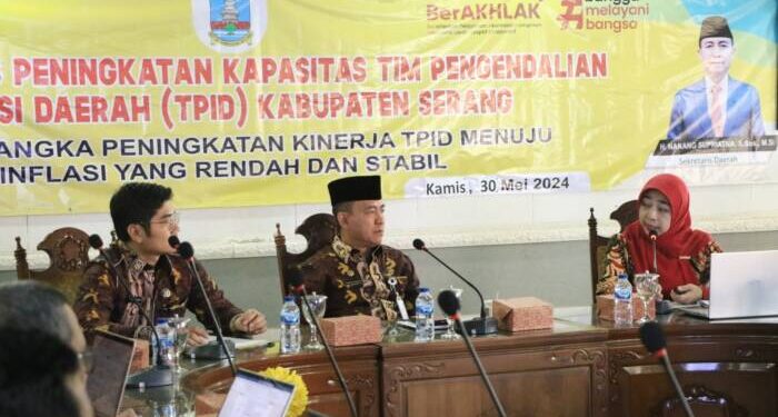 Hal itu disampaikan oleh Sekretaris Daerah (Sekda) Kabupaten Serang, Nanang Supriatna saat Rapat Teknis Peningkatan Kapasitas Tim Pengendalian Inflasi Daerah (TPID) Kabupaten Serang di gelar Bagian Perekonomian dan SDA di Aula KH Syam’un Setda Kabupaten Serang pada Kamis, 30 Mei 2024.