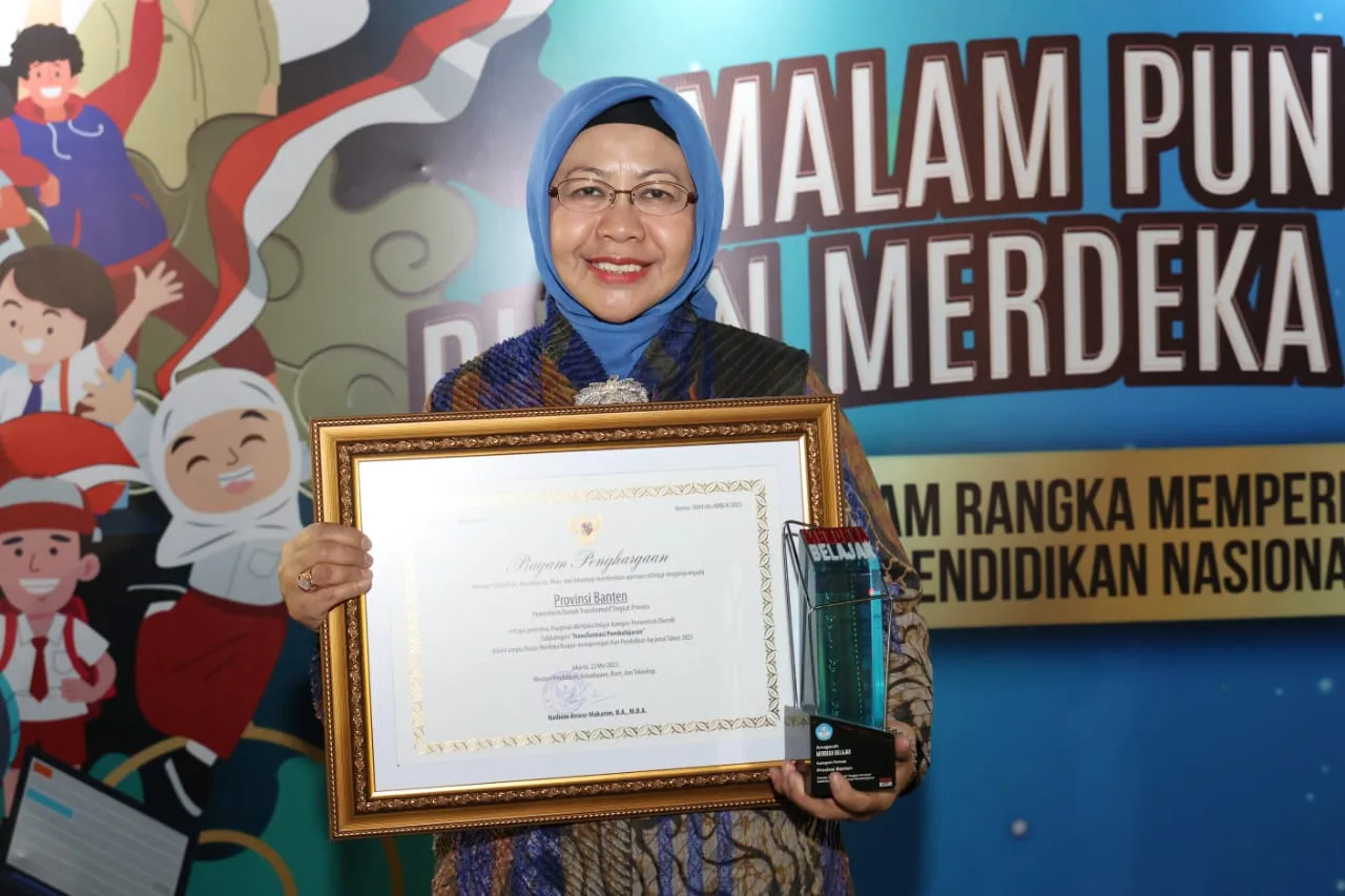 Pj Gubernur Banten Al Muktabar menerima Anugerah Merdeka Belajar sebagai Provinsi Inspiratif Transformasi Pembelajaran, yaitu Pemerintah Provinsi yang berhasil meningkatkan kemampuan literasi, numerasi satuan pendidikan di daerah dengan menerapkan aksi nyata dalam asesmen nasional program sekolah penggerak, perencanaan berbasis data, serta implementasi kurikulum merdeka di daerah masing-masing.