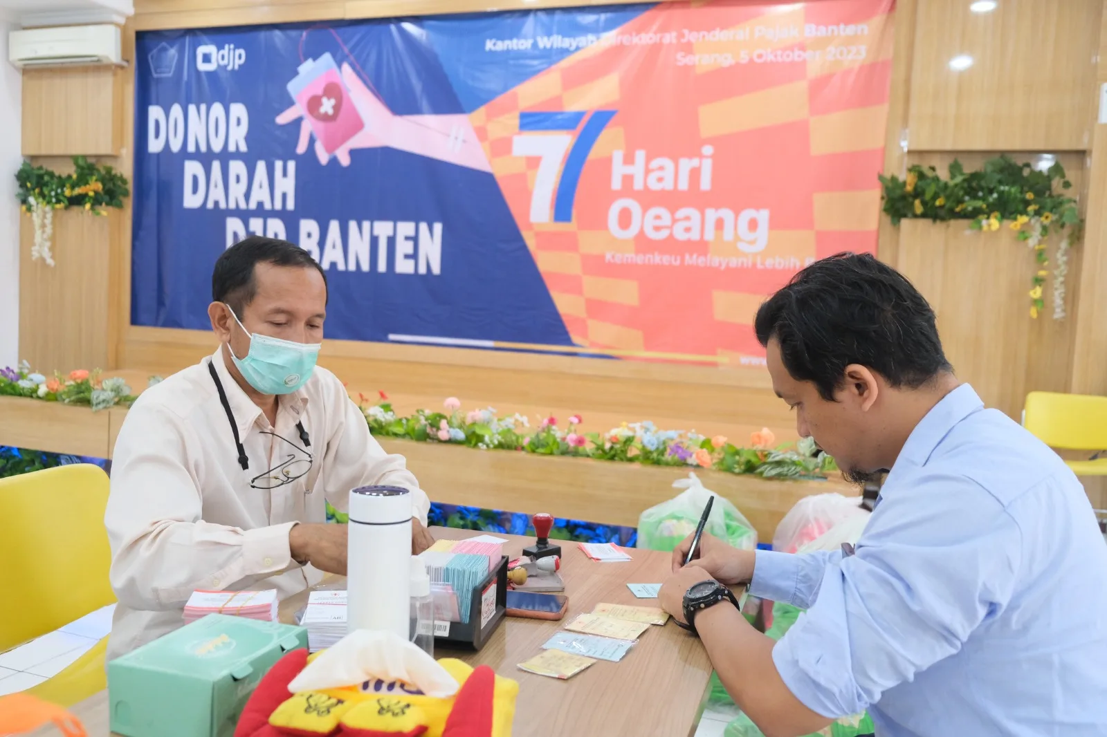 Donor darah dilaksanakan di Aula Krakatau Kanwil DJP Banten, Jalan Jenderal Sudirman Nomor 34, Sumurpecung, Serang, Banten (Kamis, 5/10).