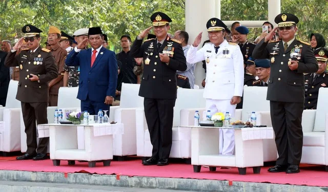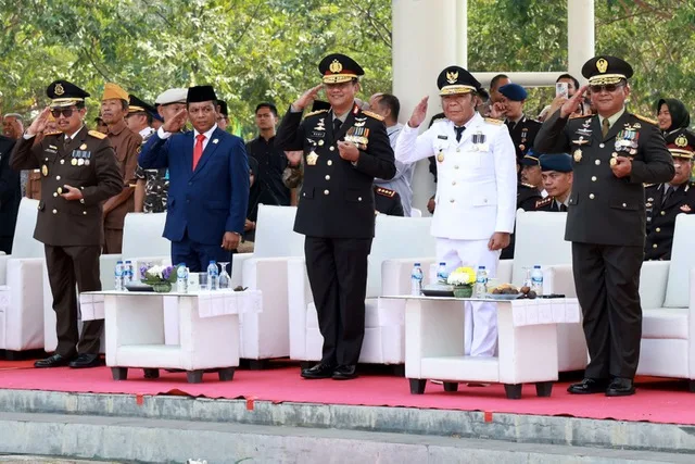 Cilegon, HALOBANTEN.COM – Penjabat (Pj) Gubernur Banten Al Muktabar menghadiri Upacara dan Parade Peringatan Hari Ulang Tahun (HUT) ke-78 Tentara Nasional Indonesia (TNI) Tahun 2023. Upacara dilaksanakan di Alun-alun Kota Cilegon, Kamis, (05/10/2023).