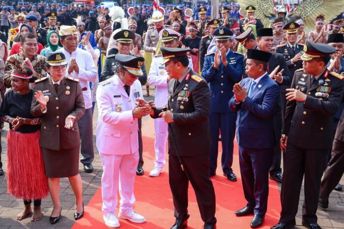Kota Serang, HALOBANTEN.COM – Penjabat (Pj) Gubernur Banten Al Muktabar, mengikuti Upacara Peringatan Hari Bhayangkara ke-78 Tahun 2024 di Alun-alun Kota Serang, Senin (1/7/2024). Upacara dipimpin oleh Kepala Kepolisian Daerah Banten Irjen Pol Abdul Karim.