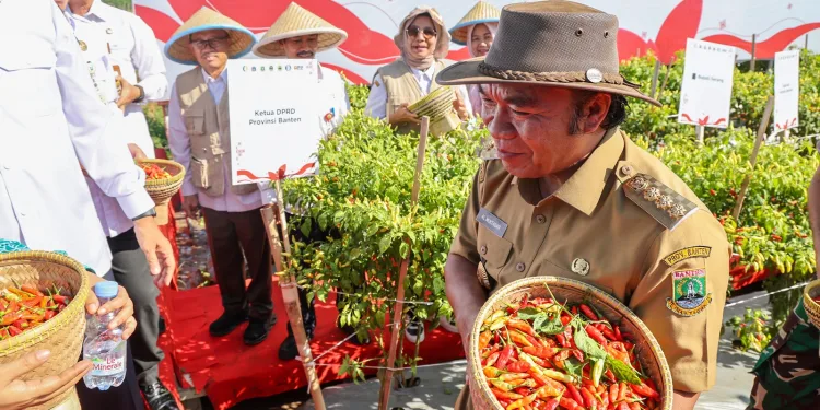 Kota Serang, HALOBANTEN.COM – Penjabat (Pj) Gubernur Banten Al Muktabar mengikuti Gerakan Panen dan Tanam Cabai secara serentak tingkat provinsi. Kegiatan ini dilakukan mulai dari Provinsi Banten, DKI Jakarta, Jawa Barat, Jawa Tengah, DIY Yogyakarta dan Sulawesi Selatan.