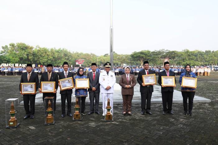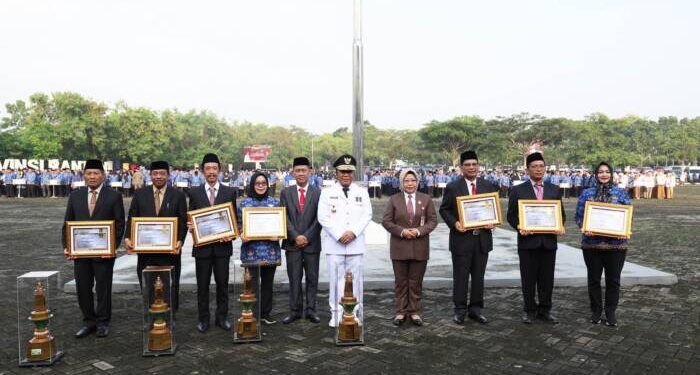 Kota Serang, HALOBANTEN.COM – Penjabat (Pj) Gubernur Banten Al Muktabar serahkan sembilan pemenang Kompetisi Inovasi Pelayanan Publik (KIPP). Penyerahan dilakukan pada Upacara Hari Otonomi Daerah ke XXVIII dan Hari Kartini Tahun 2024 di Lapangan Sekretariat Daerah Provinsi Banten, KP3B Curug Kota Serang, Senin (29/4/2024).