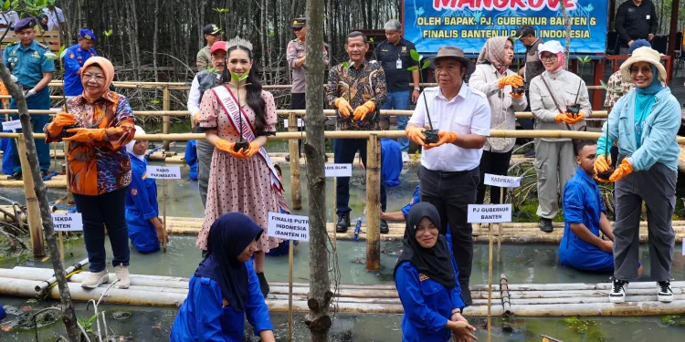 Bentuk pemeliharaan terhadap ekosistem di kawasan Teluk Banten melibatkan Pj Sekretaris Daerah Provinsi Banten Virgojanti, Finalis Putri Indonesia 2024 Banten 2 Latisa Maura dan para Kepala Organisasi Perangkat Daerah (OPD) Pemprov Banten.
