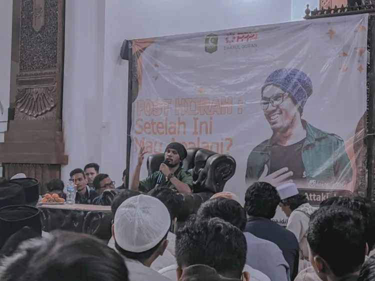 Ustadz Hanan Attaki memang terkenal dengan kajian bertema hijrah. Pembawaan yang santai dan kekian membuat dirinya dikenal banyak orang, terutama anak-anak muda. Oleh sebab itu, tema kajian kali ini sangat cocok dengan jamaah yang didominasi kalangan milenial.