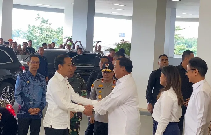 Dalam peresmian puluhan rumah sakit ini, tampak hadir Menteri Pertahanan RI Prabowo Subianto yang juga Calon Presiden RI menyambut langsung kedatangan Jokowi.