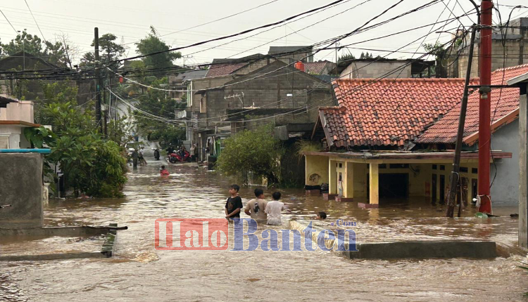 Tangerang Selatan, HALOBANTEN.COM — Air merendam puluhan rumah di kawasan Perumahan Citra 2, Keranggan, Kecamatan Setu, Kota Tangerang Selatan (Tangsel), Sabtu sore (4/4/2026) akibat hujan deras yang mengguyur wilayah tersebut sejak siang hari. Genangan air terus meningkat hingga mencapai ketinggian sekitar 1,5 meter.