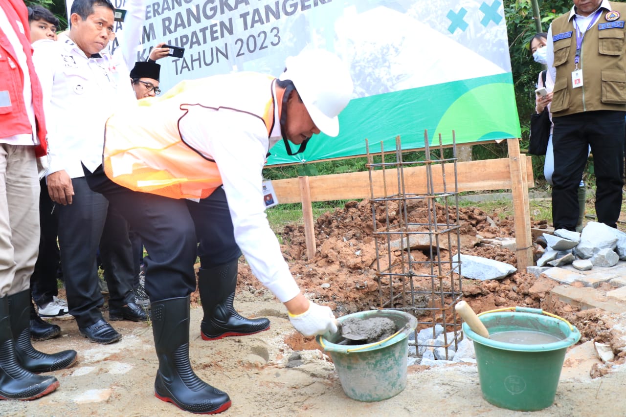 Tangerang, HALOBANTEN.COM – Sekretaris Daerah (Sekda) Kabupaten Tangerang Moch Maesyal Rasyid lakukan peletakan batu pertama pembangunan Monumen Relawan Covid-19 di Kecamatan Solear.