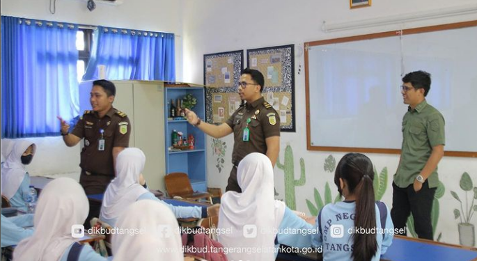 Ciputat, HALOBANTEN.COM – Sejumlah siswa SMP di Tangerang Selatan antusias mengikuti program “Jaksa Masuk Sekolah” yang diselenggarakan oleh Dinas Pendidikan dan Kebudayaan setempat.