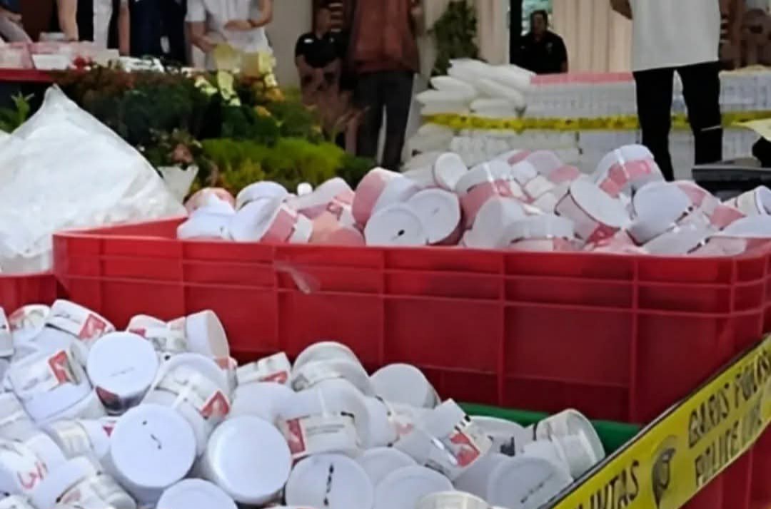 Penggerebekan dilakukan di lokasi produksi yang bersembunyi di balik kantor ekspedisi JNE, kawasan Bahagia, Babelan. Ironisnya, nama kelurahan tersebut sangat kontras dengan dampak buruk yang ditimbulkan oleh produk-produk ilegal ini.