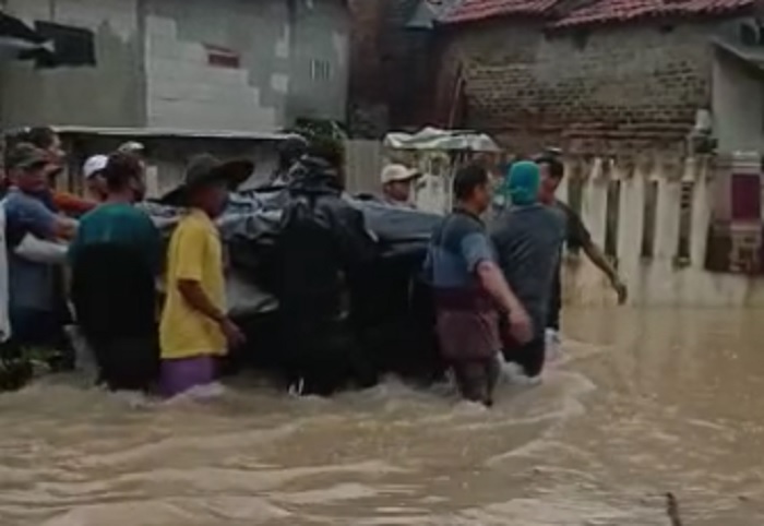 Saat kejadian, kondisi di wilayah tersebut tengah terendam banjir dengan ketinggian hampir mencapai satu meter dan merendam permukiman warga.