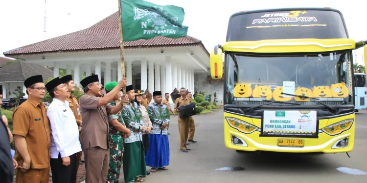 Kabupaten Serang, HALOBANTEN.COM – Wakil Bupati (Wabup) Serang Pandji Tirtayasa melepas ratusan warga Kabupaten Serang untuk menghadiri Puncak Hari Lahir (Harlah) Satu Abad Nahdlatul Ulama (NU).