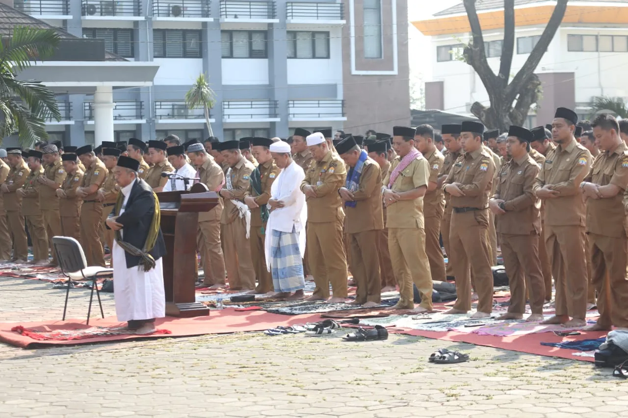 Sholat istisqo ini diikuti oleh kurang lebih 1.000 ASN, mulai dari para pejabat hingga staf. Sholat ini dipimpin oleh KH. Hasanudin.