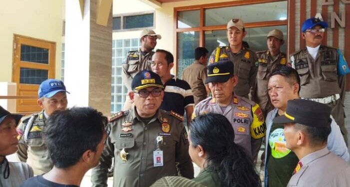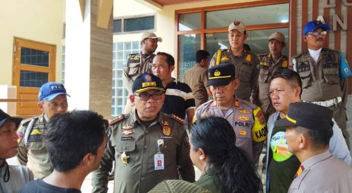 Karena ketua dewan dan anggotanya di kabarkan tidak ada di tempat, wartawan dan mahasiswa mendobrak pintu pagar yang di jaga Satpol PP hingga masuk di depan lobi DPRD.